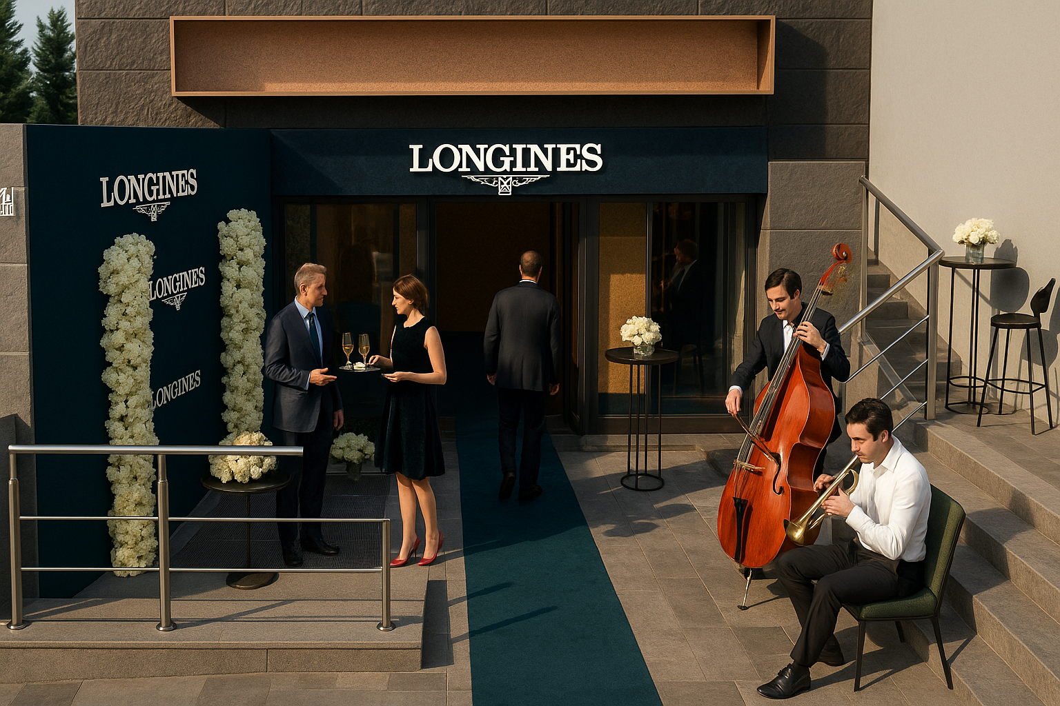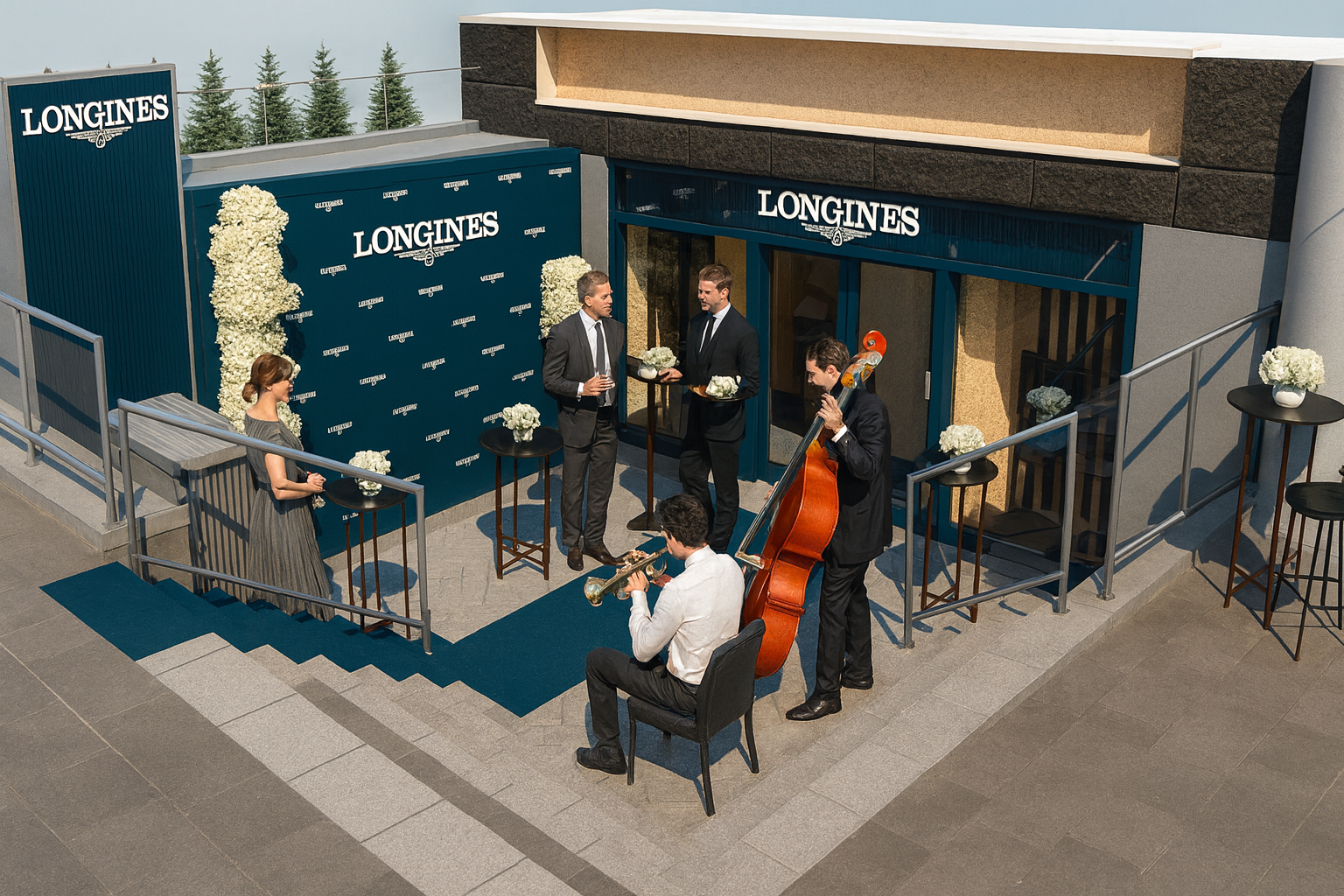 Mekân kurgusu, marka deneyimini mekânsal bir yolculuğa dönüştürme fikriyle şekillendirildi. Girişte kullanılan siyah ve lacivert tonları, Longines’in zamansız zarafetini temsil ederken; çiçek detayları ve metalik yüzeyler, modern lüksün yumuşak bir yorumunu yansıtır.